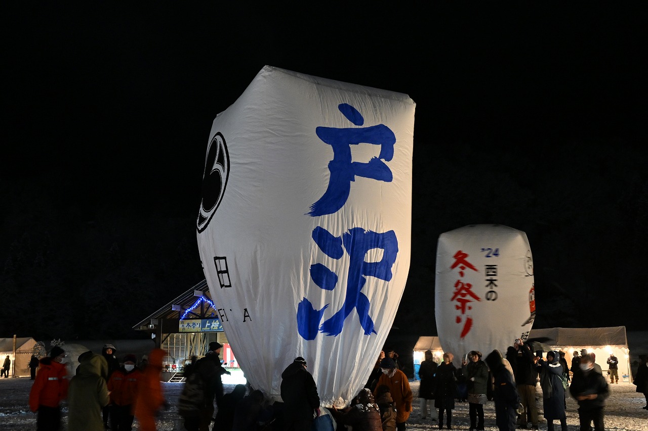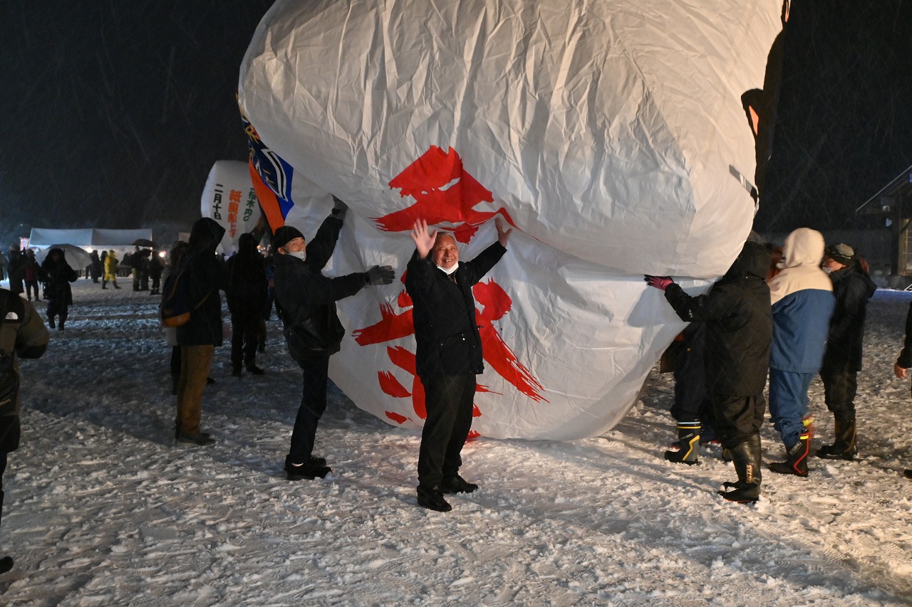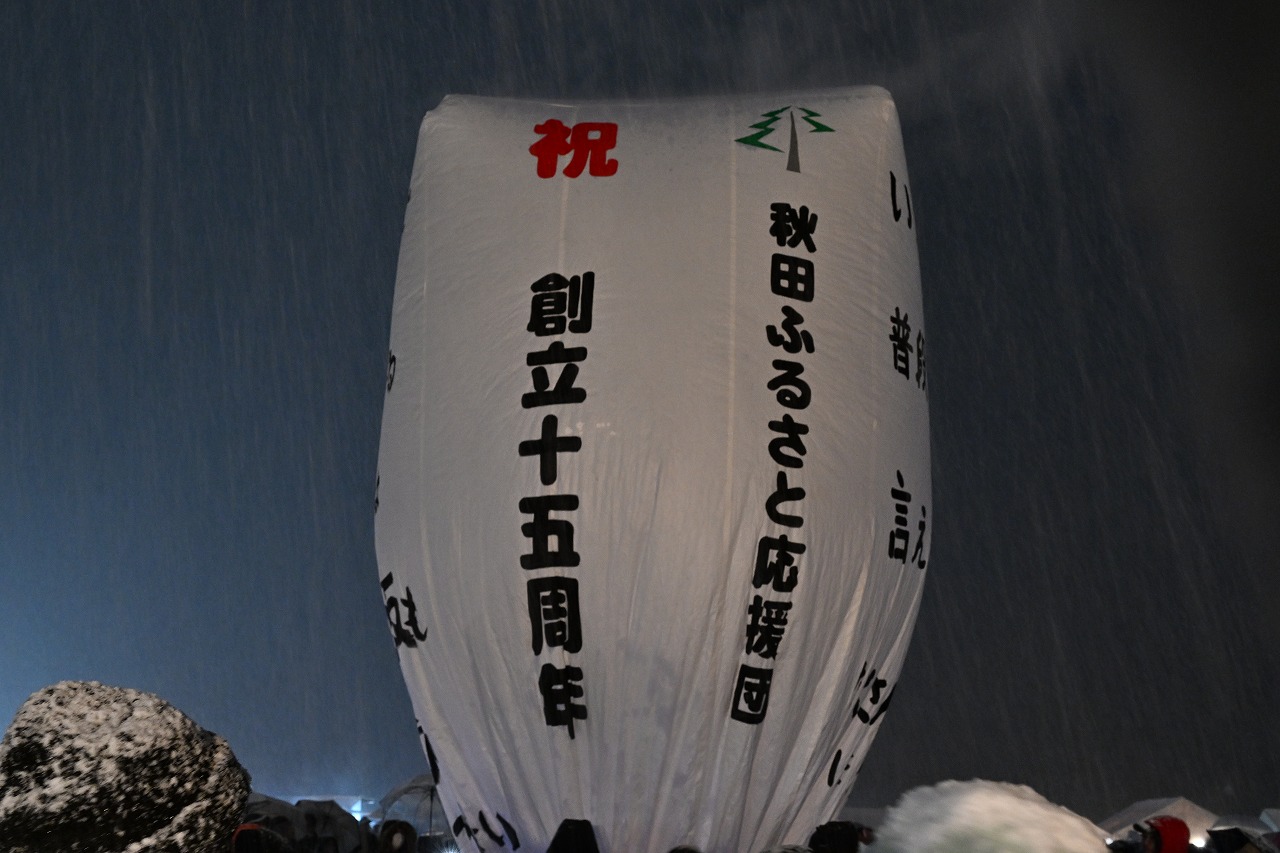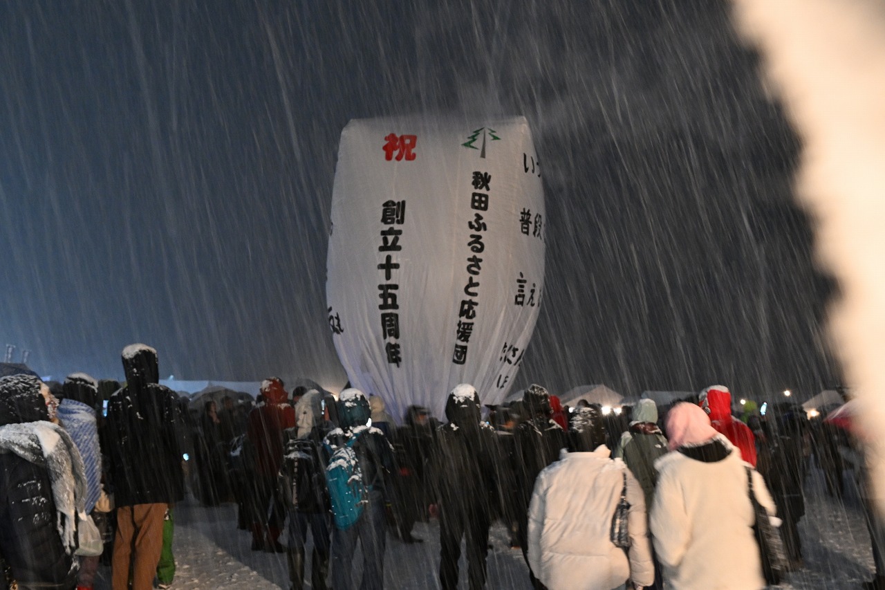 2月10日(土)に秋田県仙北市西木町上桧木内の紙風船広場で行われた、小正月行事「紙風船上げ」に秋田ふるさと応援団15周年記念として紙風船を上げました。
