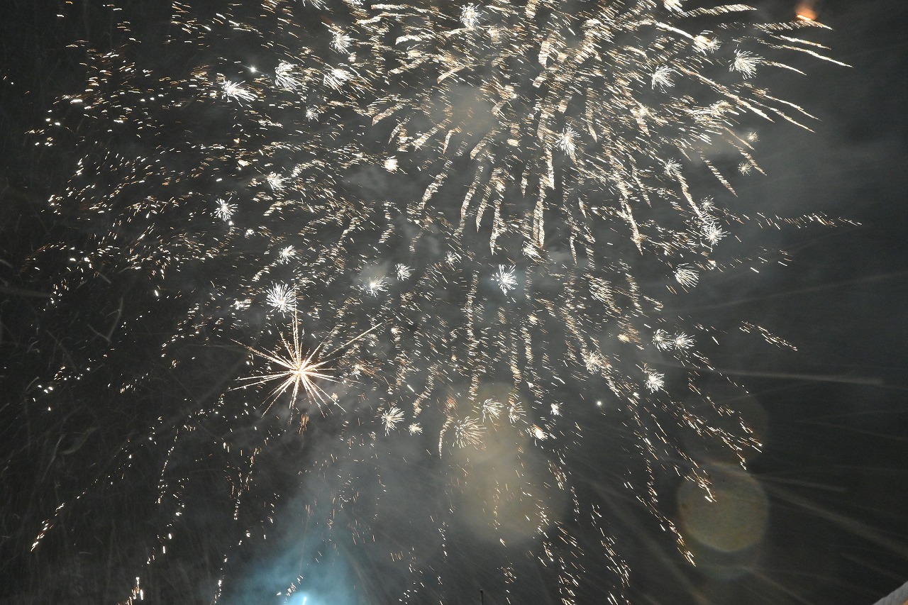 7時と8時に、地元住民の願いを込めた大型の紙風船50個が舞い上がり夜空に幻想的に映りましたがシャッターチャンス無く写真が撮れませんでした。