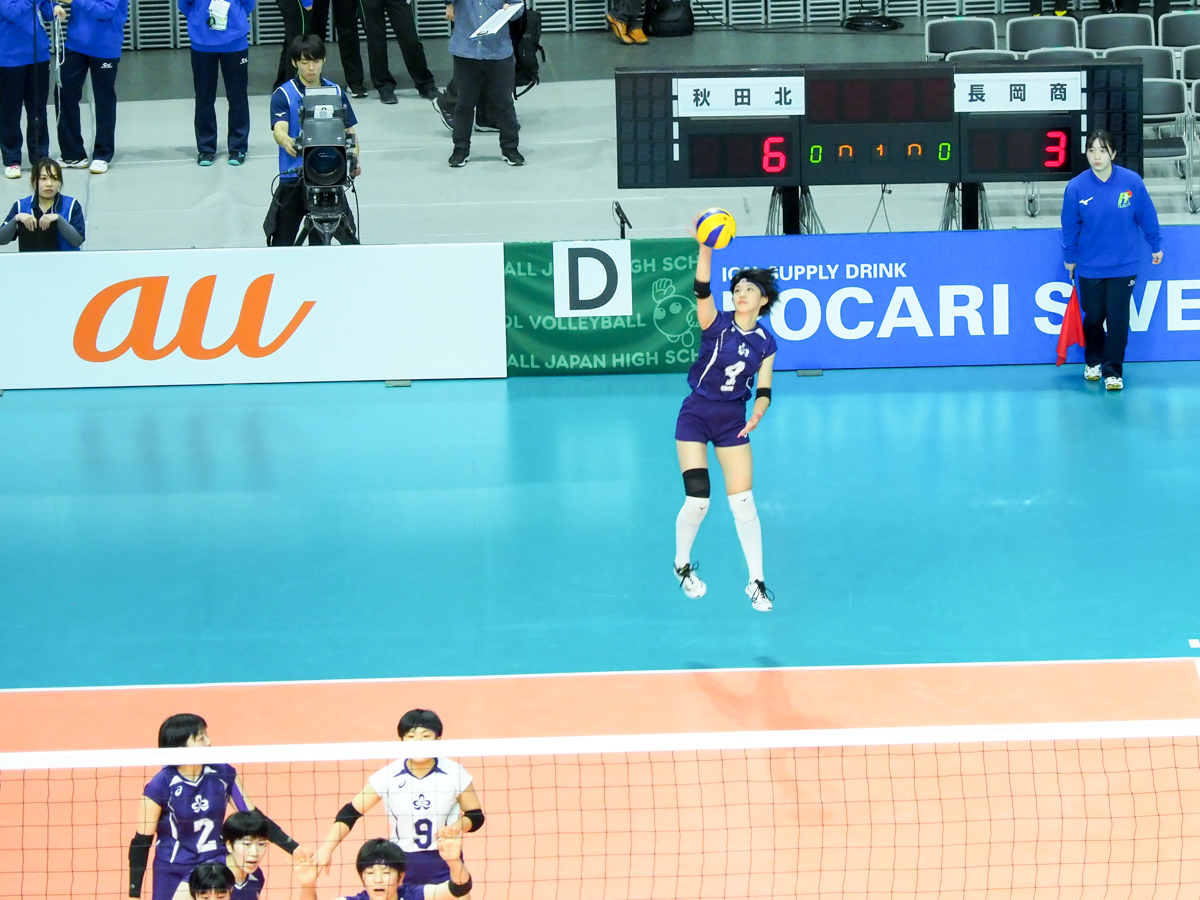 長岡商はスパイクの決定力不足に苦しみ、最後までペースをつかめなかった。(秋田魁新報より)