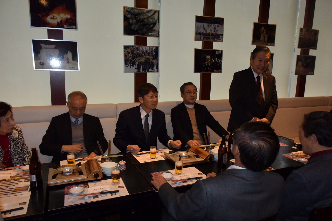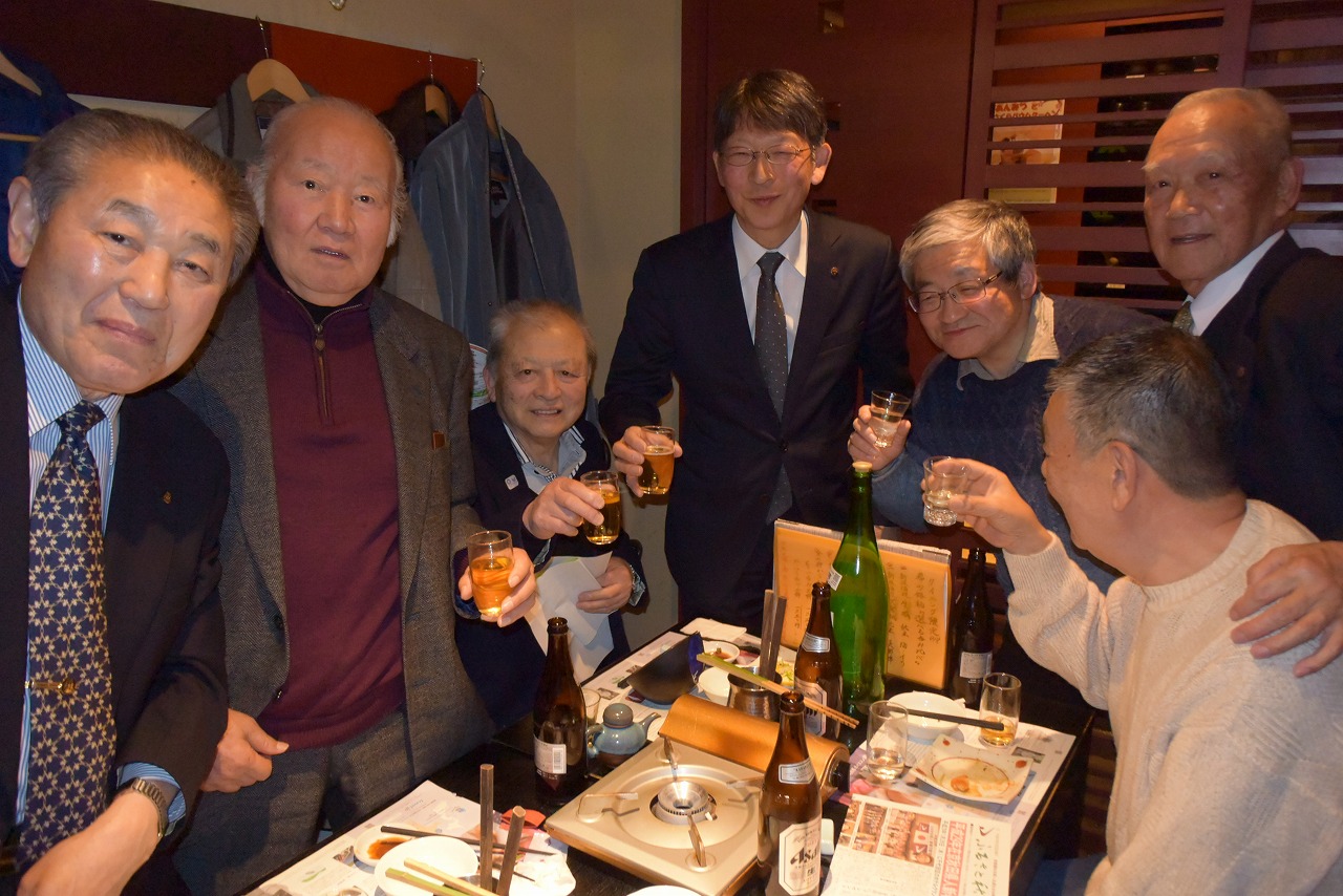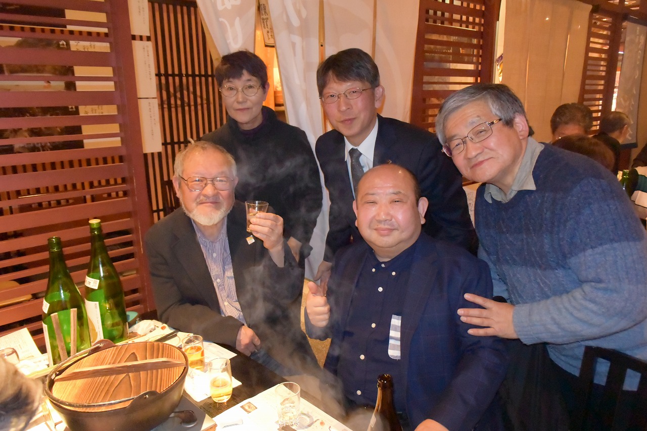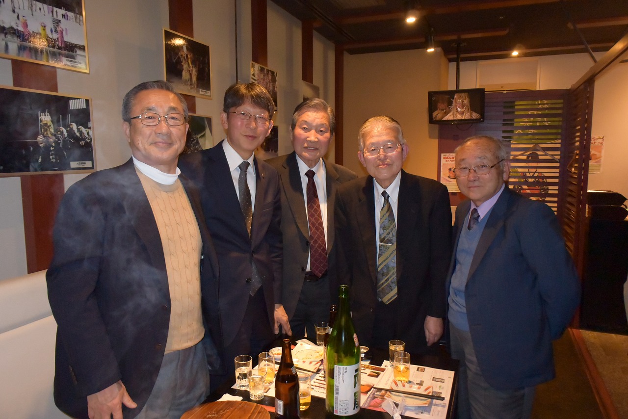 高久浩二元会長の挨拶と乾杯で始まりした。秋田の日本酒が飲み放題で次第に盛り上がり各テーブルの代表者が歌やスピーチを行い大賑わいでした。牧野所長が各テーブルごとにお酒を継ぎに回り、写真を撮りました。