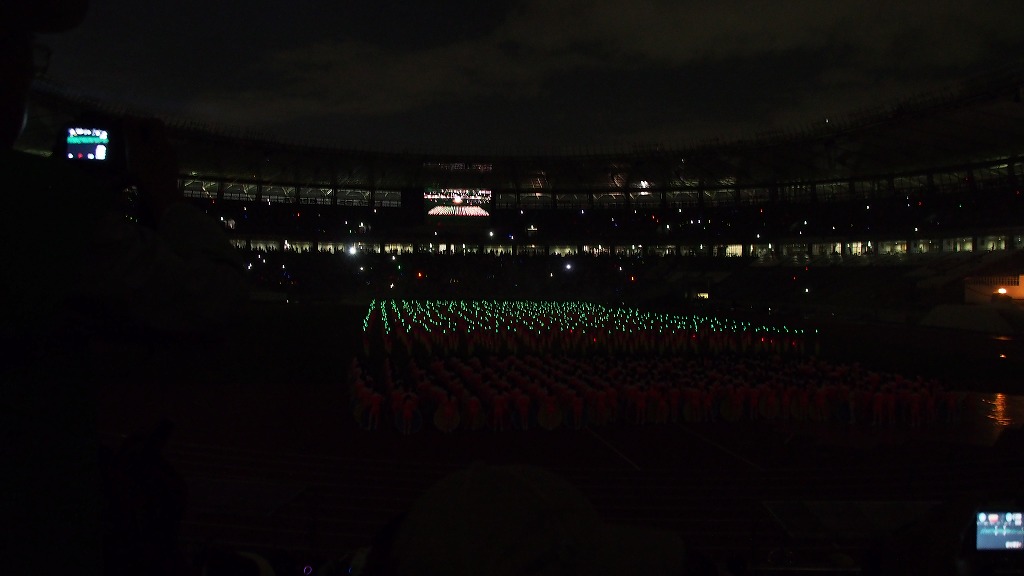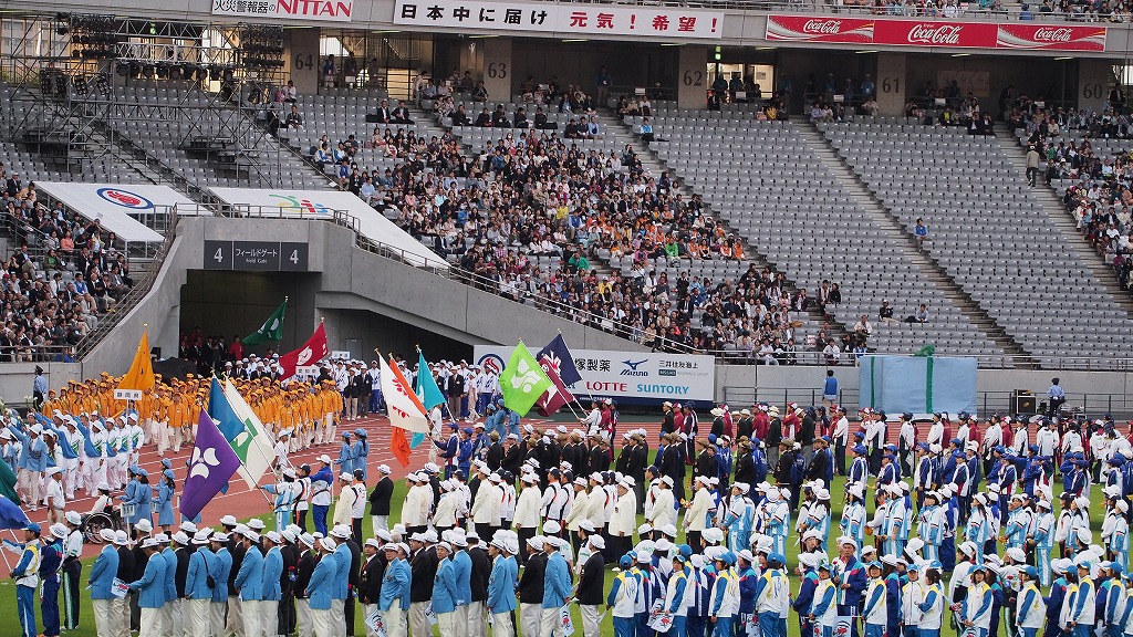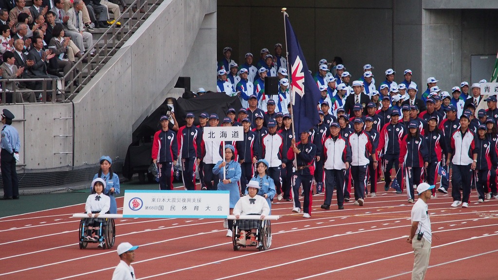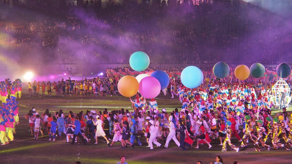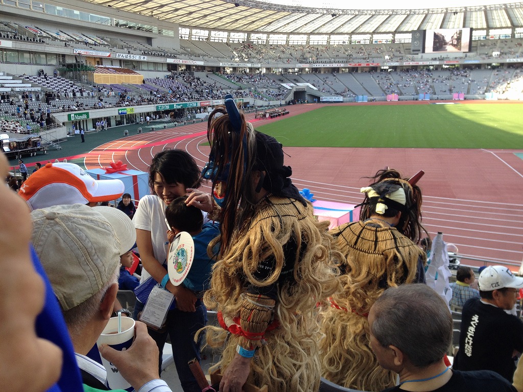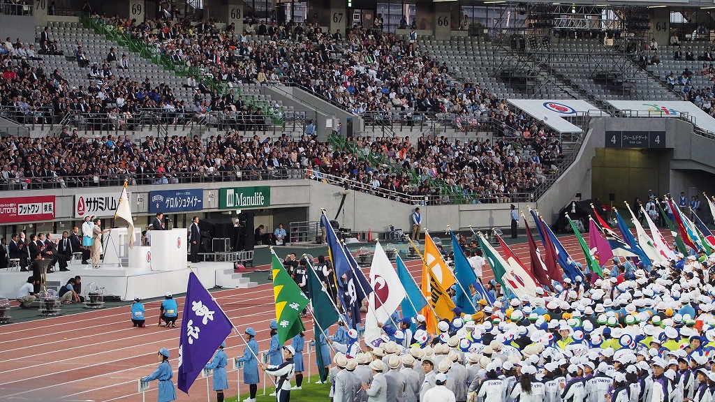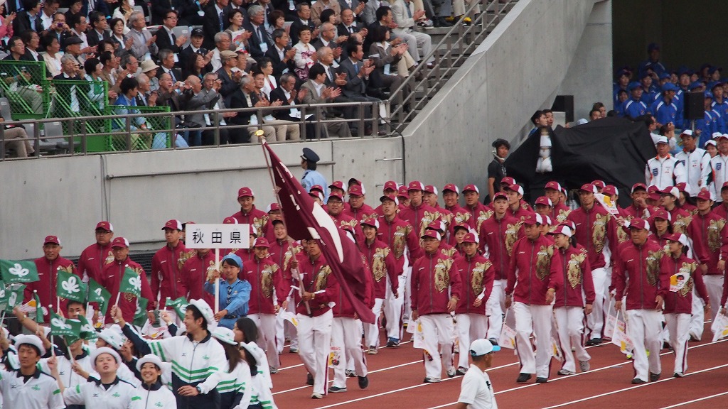 第68回国民体育大会「スポーツ祭東京2013」の開会式が9月28日(土)調布市の味の素スタジアムに3万3千人が集い開催されました。 今回の国体は、大会開会式の式典テーマが「未来をひらく、スポーツのチカラ、 オリンピック・パラリンピックへつなげる火と光の祭典」となっているように、7年後の東京オリンピックを意識したものと言われており開会式式典もオリンピックと同じ17時からとなりました。「ふるさと47応援プロジェクト」として参加した若杉会や秋田ふるさと応援団など在京秋田県人関係者も多く出席し、スタンド席から声援を送りました。
