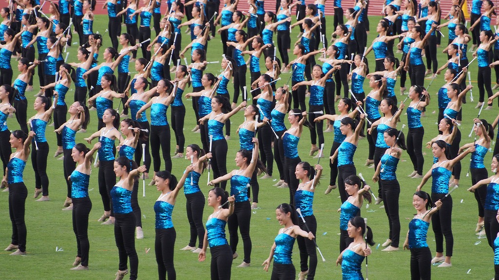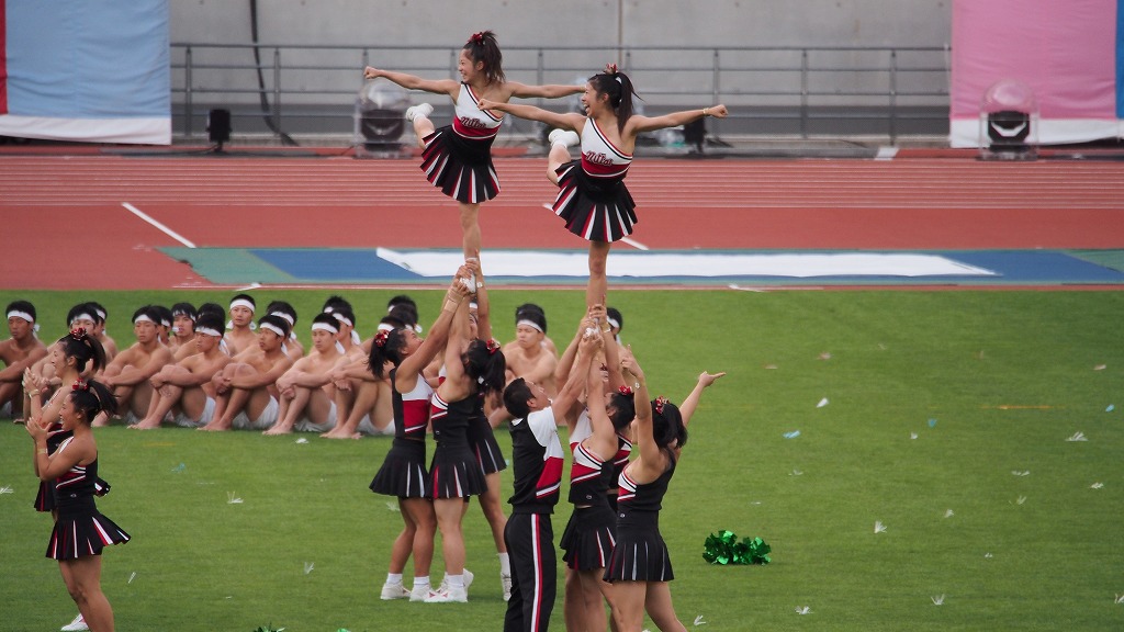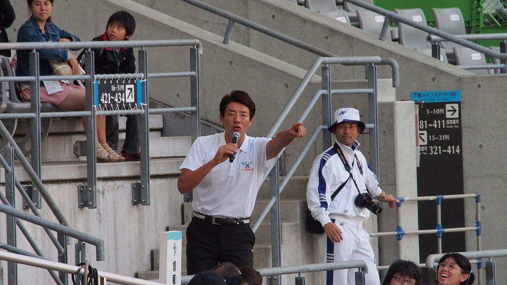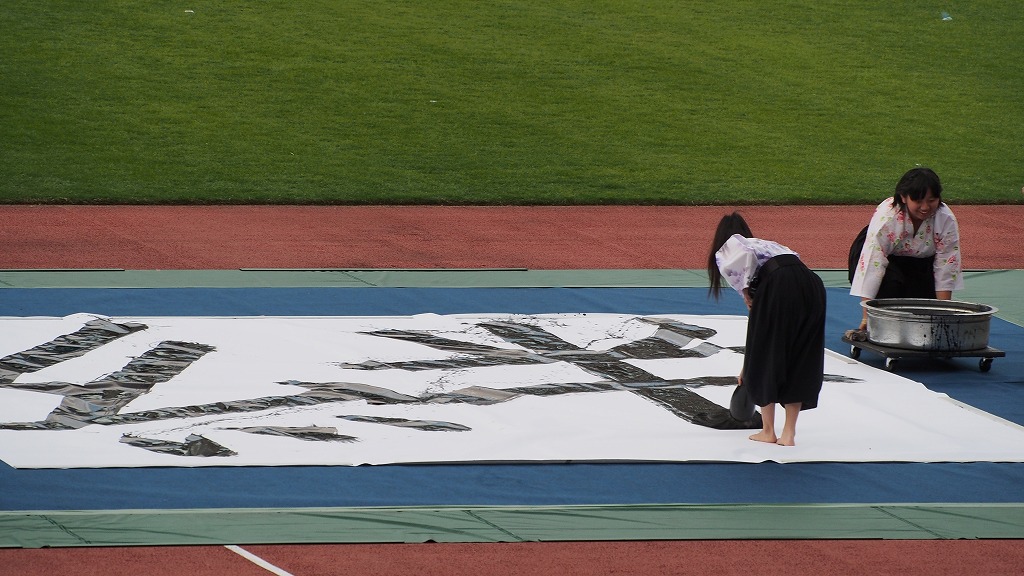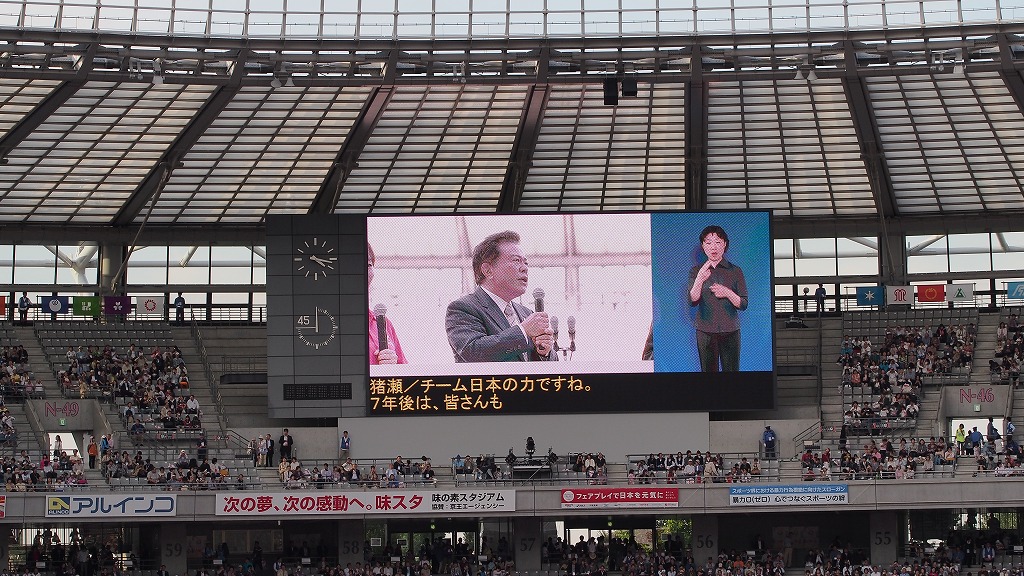 自衛隊ブルーインパルスがスタジアム上空を飛行